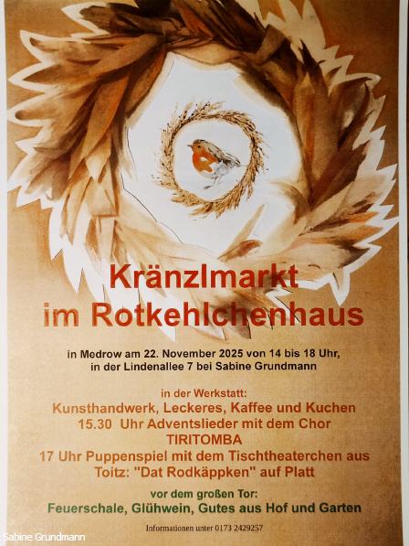 Als studierte Pädagogin gibt sie hre Kenntnisse sowie Experimentierfreude im Rotkehlchenhaus, ihrer Werkstatt in Medrow passioniert weiter – an Kinder und Erwachsene, die sich jeweils donnerstags bei ihr einfinden und gemeinsam sowie frei arbeiten.