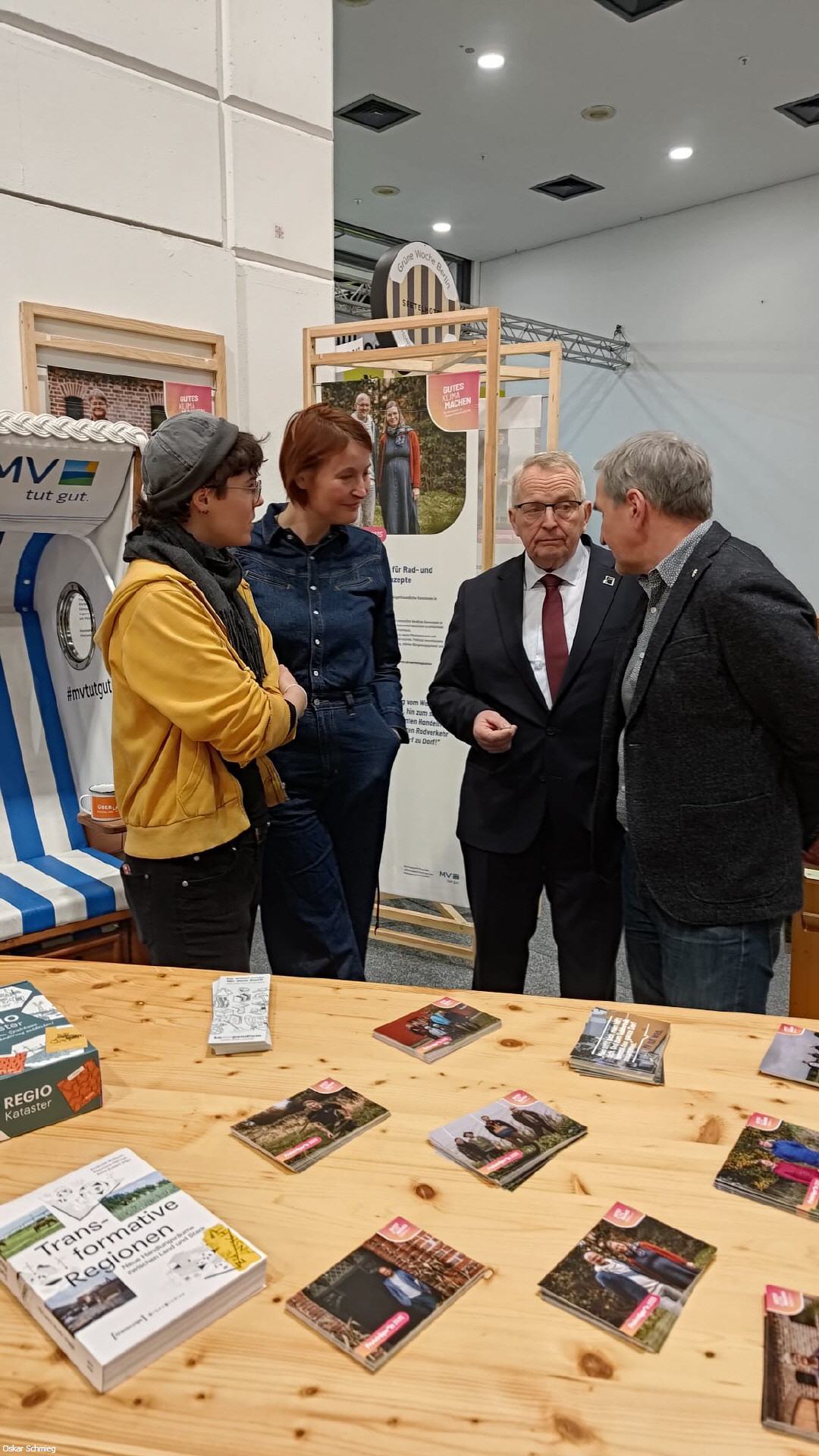 Der mit vier Bürgerinnen und Bürgern während der Preisverleihung besetzte Stand der Gewinner wurde gut besucht; insbesondere von Bürgermeistern, die interessiert daran waren wie es gelang, in Nossendorf Engagement, Gemeinschaft und Zuversicht zu fördern und damit ein starkes Beispiel für machbare Projekte und somit gelebten Wandel von unten zu geben.