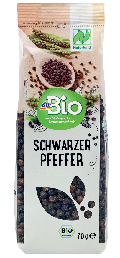 | dmBio Pfeffer schwarz, ganze Körner, 70 Gramm |