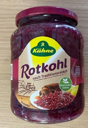 |  Bildquelle © Carl Kühne KG Verpackungseinheit: Füllmenge 720 Milliliter bzw. 660 Gramm, Abtropfgewicht 450 Gramm Chargennummer / Los-Kennzeichnung: GTIN 4080 4095 Grund der Meldung: Allergene Haltbarkeit: Mindesthaltbarkeitsdatum: 15.12.2025 Hersteller / Inverkehrbringer: Carl Kühne KG (GmbH & Co.),