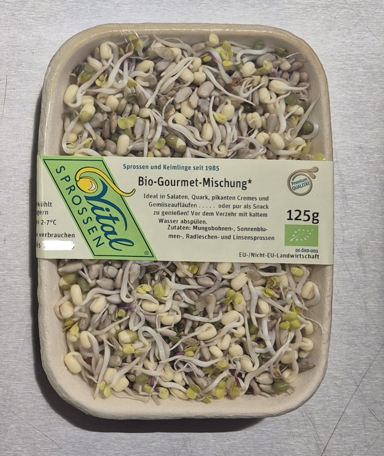 Bio-Gourmet-Mischung 125 Gramm Chargennummer / Los-Kennzeichnung: Losnummer: 16298 Verbrauchsdatum: 06.10.2025